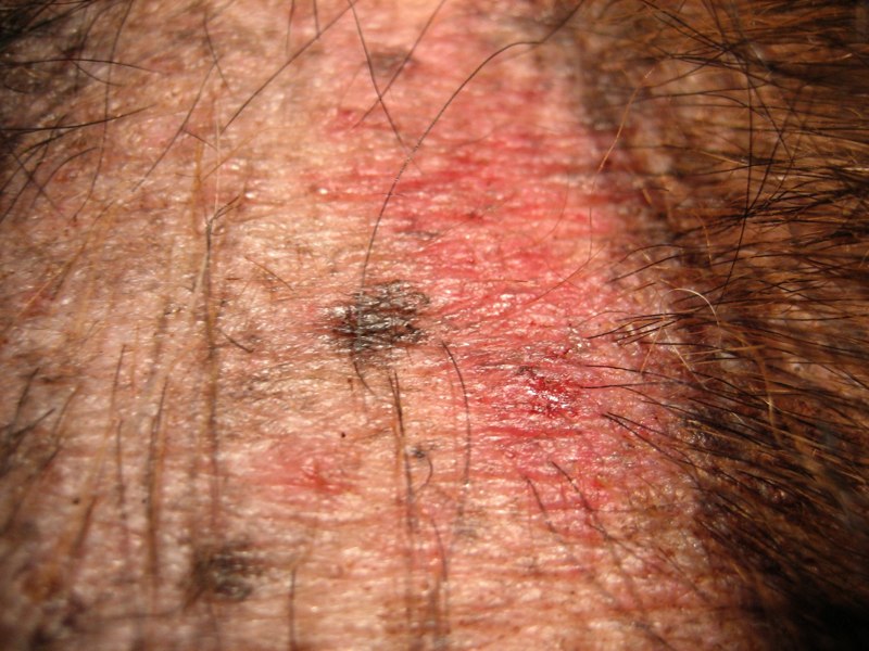 En se grattant et en se mordant de façon frénétique, le chien s’inflige des automutilations qui mettent parfois le derme à vif.